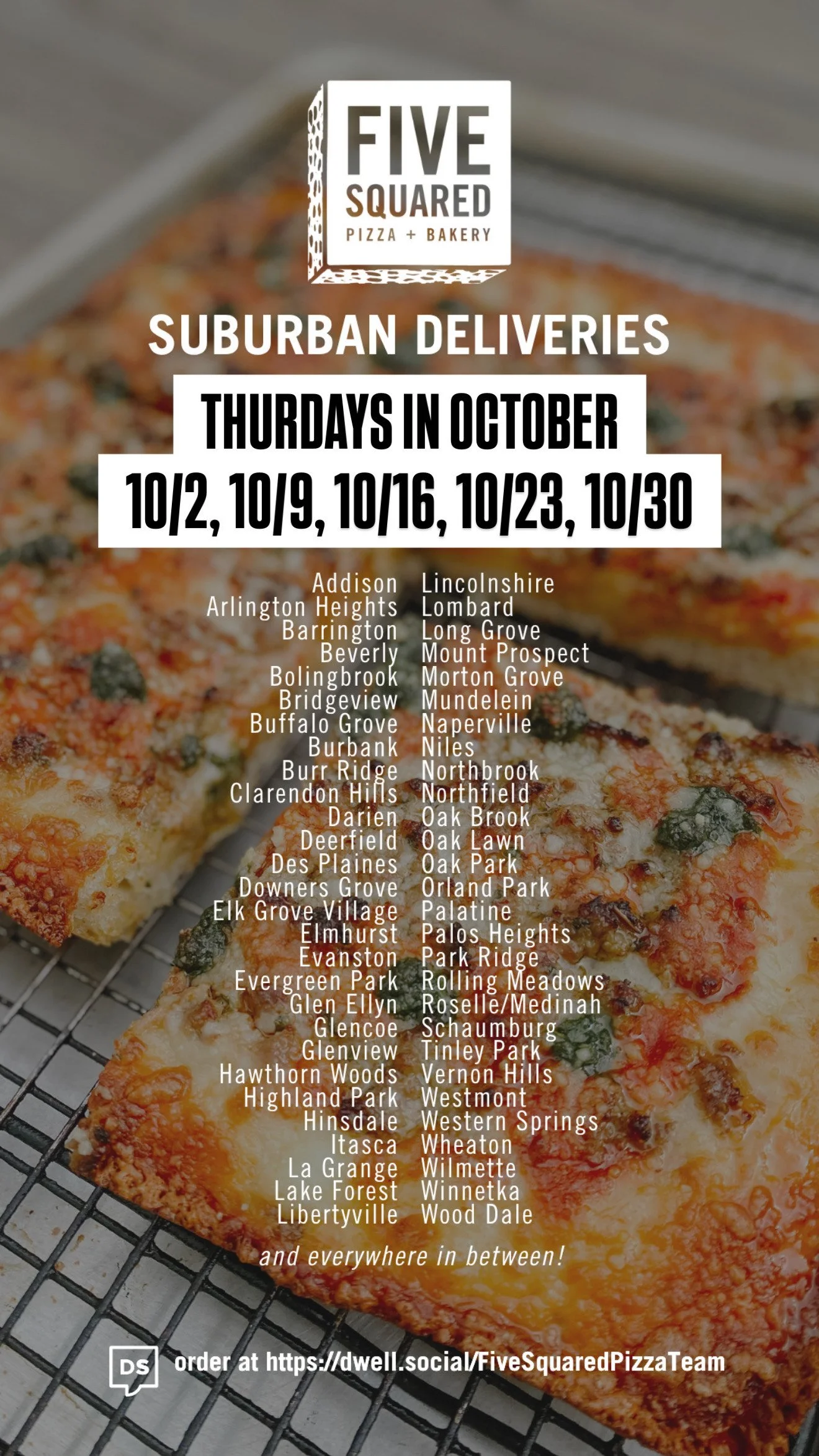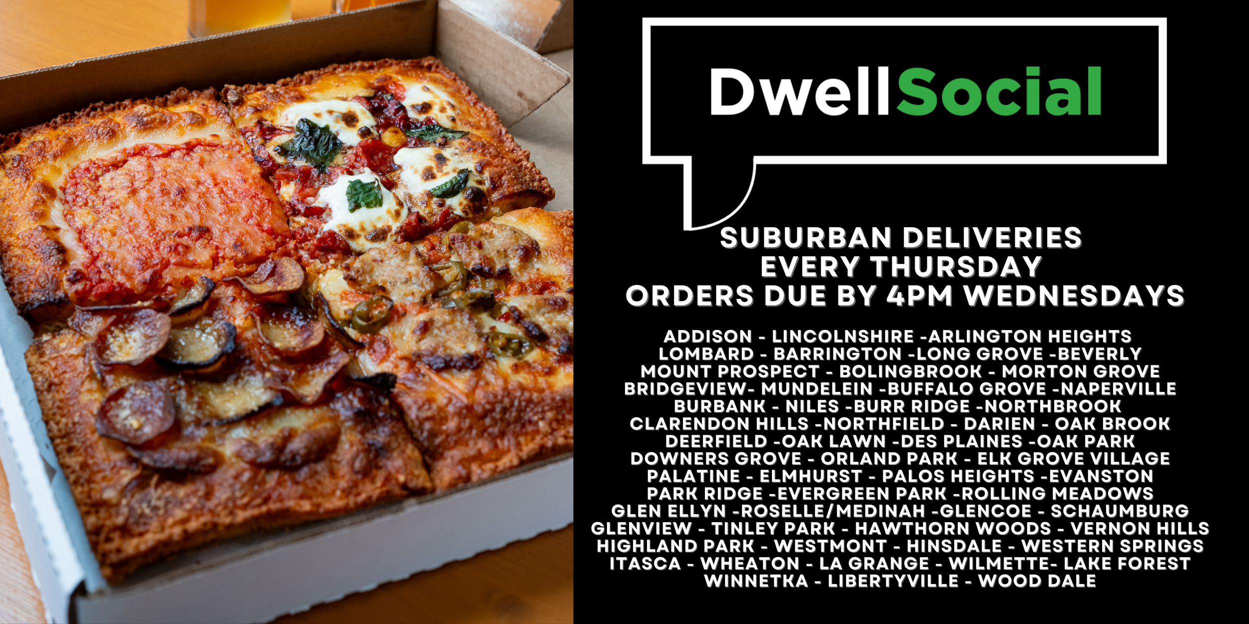 WE’VE TEAMED UP WITH DWELLSOCIAL TO BRING OUR PIZZAS TO THE BURBS EVERY THURSDAY!